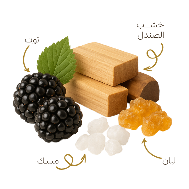 مكونات الزيت العطري : توت - خشب الصندل - مسك - لبان
