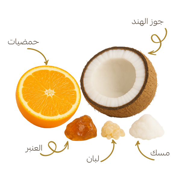 مكونات معطر الجو : حمضيات – جوز هند – لبان – عنبر - مسك