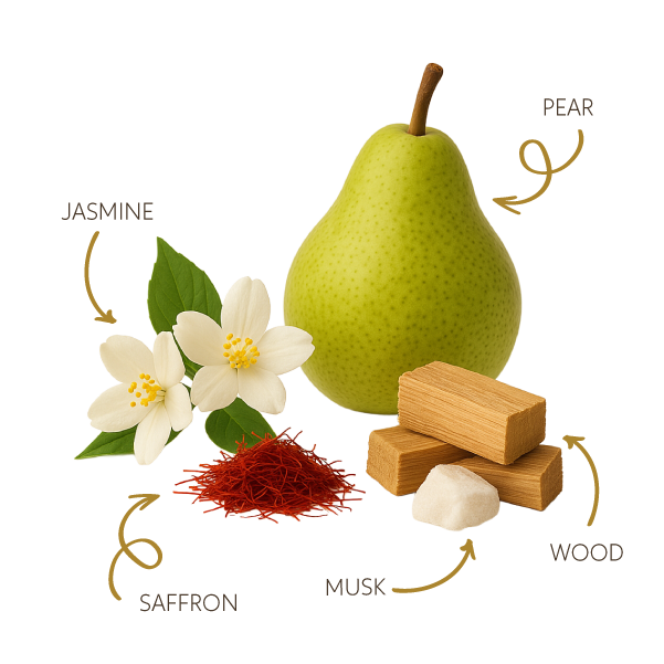 Fragrance Ingredients: Jasmine – Saffron – Pear – Musk – Sandalwood