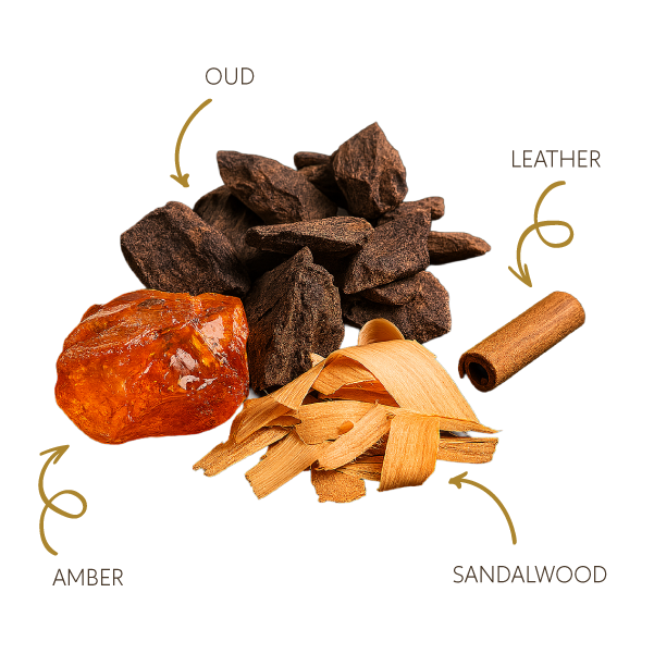 Fragrance Ingredients: Oud – Amber – Sandalwood – Leather